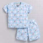 Happy Faces Checked Looney Tunes Printed Cotton Clothing Set For Infant Boys ( P.Blue, Pack Of 1)