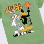 Let your child’s style hop into action with this fun and playful green Bugs Bunny printed T-shirt. Featuring a cheeky humour and comic-style print on the back, this tee brings classic cartoon charm to modern casualwear.
