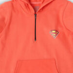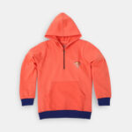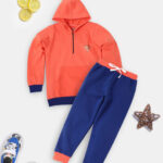 Two-piece clothing set for boys featuring an orange sweatshirt and navy blue joggers
