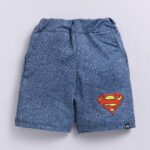 Let your little one show off their superhero style with these blue Superman printed shorts. Featuring a humour and comic-style print, these shorts are perfect for casual wear, playdates, or lounging. The mid-rise waist and regular fit ensure comfort all day long.