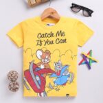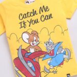 Bring classic cartoon fun to your child’s wardrobe with this vibrant yellow and grey Tom & Jerry T-shirt. Featuring a lively humour and comic-style chest print of the iconic cat-and-mouse duo, this tee adds a playful twist to any casual outfit.