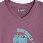 Eteenz Dino World Comic Printed Premium Cotton V-Neck T-Shirt for Boys (Purple, Pack of 1)