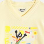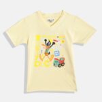 Eteenz Looney Tunes Comic Printed Premium Cotton V-Neck T-Shirt for Boys (Yellow, Pack of 1)