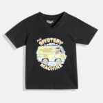 Eteenz Scooby-Doo Comic Printed Premium Cotton V-Neck T-shirt for Boys (Black, Pack of 1)