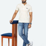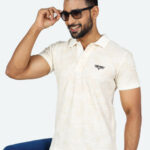 Let him step out in style with this Men’s Abstract Printed Polo Collar Pure Cotton T-shirt. Crafted from soft pure cotton fabric, this cream-colored T-shirt features a polo collar, short sleeves, and a regular hem for a comfortable fit. Designed with a button closure and short length, it ensures ease and everyday comfort.