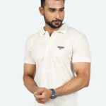 GAME BEGINS Men Abstract Printed Polo Collar Pure Cotton T-Shirt (Cream, Pack Of 1)