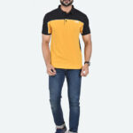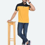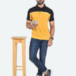Let him step out in style with this Men’s Colourblocked Polo Collar Pure Cotton T-shirt. Crafted from soft pure cotton fabric, this yellow T-shirt features a polo collar, short sleeves, and a regular hem for a comfortable fit. Designed with a button closure and short length, it ensures ease and everyday comfort.