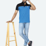 Let him step out in style with this Men’s Colourblocked Polo Collar T-shirt. Crafted from soft pure cotton fabric, this blue T-shirt features a polo collar, short sleeves, and a regular hem for a comfortable fit. Designed with a button closure and short length, it ensures ease and everyday comfort.