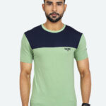 GAME BEGINS Men Colourblocked Pure Cotton T-shirt (Green & Blue, Pack of 1)