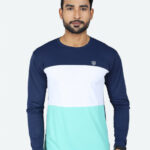 GAME BEGINS Men Colourblocked Round Neck Long Sleeve T-shirt (Navy, Pack of 1)