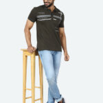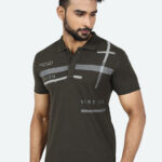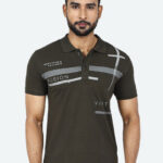 GAME BEGINS Men Printed Pure Cotton Polo Collar T-Shirt (Olive Green, Pack Of 1)