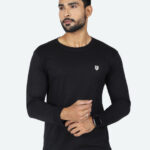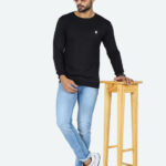 Black men’s fleece pullover sweatshirt with round neck
