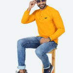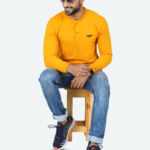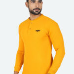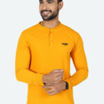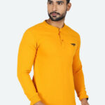GAME BEGINS Men Solid Henley Neck Long Sleeve Pure Cotton T-Shirt (Yellow, Pack of 1)