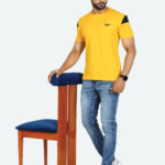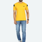 Solid yellow & black men’s T-shirt with round neck