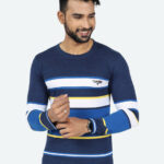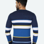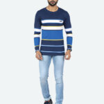 GAME BEGINS Men Striped Round Neck Long Sleeve Pure Cotton T-shirt (Navy Blue, Pack of 1)