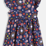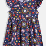 Add a touch of charm to your little one’s wardrobe with this Girls Floral Print Cotton Fit & Flare Dress. Designed in a navy blue floral print, this dress features a round neckline, short flutter sleeves, and a knee-length flared hem. Crafted from soft cotton fabric, it ensures all-day comfort and breathability. Finished with a button closure, this dress is easy to wear and maintain with machine wash care.