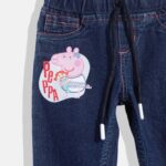 These navy blue slim-fit jeggings for girls are designed with a playful Peppa Pig print that adds fun to everyday outfits. They feature a comfortable drawstring closure for a secure fit and come with three practical pockets for convenience. Crafted from a stretchable cotton-polyester-elastane blend, these jeggings provide durability, flexibility, and comfort, making them perfect for casual wear and active days.