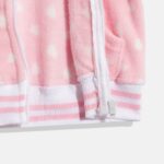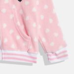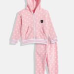 This girls’ clothing set is a cute and comfortable choice for casual wear, featuring a pink and white polka-dotted sweatshirt paired with matching joggers. The sweatshirt is designed with a round neck and long sleeves, while the joggers come with an elasticated waistband and a slip-on closure for ease of wear. Crafted from soft suede fabric, this set offers a cozy feel and a stylish look, making it perfect for lounging, playdates, or everyday outings.