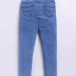 Medium shade, no-fade blue jeans with a slim fit and mid-rise waist for a stylish and comfortable look. Designed with a clean finish, stretchable fabric, and a trendy printed design, these jeggings feature five functional pockets and a regular length, making them ideal for everyday wear.