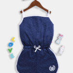 Navy blue striped basic jumpsuit for girls with adjustable shoulder straps and a sleeveless design