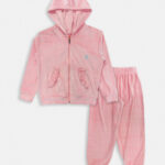 Peach-coloured solid clothing set for girls consisting of a sweatshirt and joggers