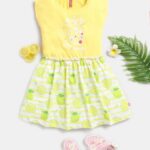 Be the first to review “Girls Yellow and Green Tropical Printed Pure Cotton Fit and Flare Dress”