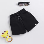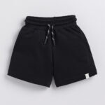 Happy Faces Solid Printed Regular Fit Cotton Shorts For Boys(Black, Pack Of 1)