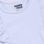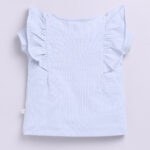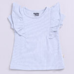 Let your little one step out in style with this Girls Striped Ruffles Detail Top from Happy Faces. Crafted from soft pure cotton fabric, this grey top features vertical stripes, a round neck, short sleeves, and charming ruffle details for a stylish and comfortable fit. Perfect for casual outings, playtime, or everyday wear, it combines ease, style, and fun design for your little girl.