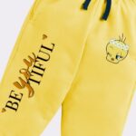Discover the perfect blend of comfort and style with our Kid-Girls’ yellow joggers, designed to support every active lifestyle with ease. Whether she’s heading to school, playing outdoors, or just relaxing at home, these joggers are a go-to essential for everyday wear. Featuring a vibrant Looney Tunes character print, these joggers add a playful and fun touch to her casual wardrobe.