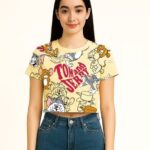 Bring playful nostalgia to your wardrobe with our Women’s Tom & Jerry Graphic Print Boxy Fit Top. Featuring a bold and fun print of everyone’s favorite cartoon duo, this top combines retro vibes with modern streetwear style.