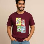 men’s Bugs Bunny printed t-shirt, maroon cartoon crew neck tee, regular fit short sleeve t-shirt, casual Bugs Bunny print top for men, soft Sinker fabric t-shirt, everyday casual cartoon tee, nostalgic cartoon graphic t-shirt, stylish men’s printed t-shirt, medium length cartoon t-shirt, fun Bugs Bunny t-shirt for men.