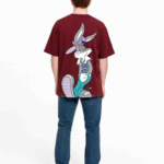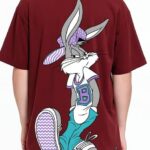 men’s Looney Tunes t-shirt, maroon graphic printed t-shirt, regular fit crew neck tee, casual cartoon print top, viscose fabric men’s t-shirt, trendy Looney Tunes top for men, short sleeve printed tee, soft viscose round neck shirt, casual wear men’s t-shirt, stylish printed men’s t-shirt