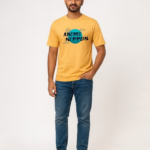 men graphic print t-shirt, mustard crew neck t-shirt, cotton printed tee for men, regular fit graphic t-shirt, casual cotton t-shirt, men’s round neck graphic tee, short sleeve cotton t-shirt, pure cotton printed t-shirt, everyday wear men’s tee, stylish mustard men’s t-shirt