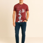 Pair this tee with denim shorts or slim-fit jeans for a relaxed look. Add a light bomber jacket or hoodie over it when layering, and finish with sneakers for a youthful, laid-back vibe.
