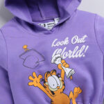 Vibrant purple sweatshirt with a playful Garfield graphic print