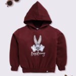 Minute Mirth Girls Looney Tunes Printed Fleece Hooded Sweatshirt (Burgundy, Pack of 1)