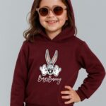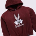 Keep your little one warm and stylish with this Looney Tunes Printed Fleece Hooded Sweatshirt from Minute Mirth. Featuring an adorable Looney Tunes print on a rich burgundy base, this sweatshirt combines cozy comfort with playful charm. The soft fleece fabric provides extra warmth, while the hooded neckline and long sleeves ensure complete coverage during chilly days. Perfect for school, outings, or casual wear, it’s a fun addition to your girl’s winter wardrobe.