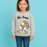 Minute Mirth Girls Looney Tunes Printed Fleece Sweatshirt (Grey Melange, Pack of 1)