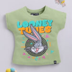 Minute Mirth Girls Looney Tunes Printed Round Neck T-shirt (Green, Pack of 1)