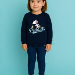 Let your little one step out in fun and comfort with this Girls Peanuts Printed Sweatshirt. Crafted from soft fleece fabric, this navy blue sweatshirt features a round neck, long sleeves, and a ribbed hem for a snug and comfortable fit. Designed in a pullover style with a regular length, it ensures warmth and ease for everyday wear.