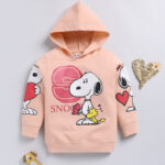 Minute Mirth Girls Peanuts Printed Hooded Sweatshirt (Peach, Pack of 1)