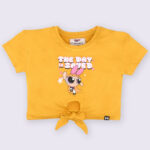 Minute Mirth Girls Powerpuff Girls Printed Crop Top (Mustard Yellow, Pack of 1)