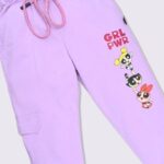 Minute Mirth Girls Powerpuff Girls Printed Relaxed Fit Cotton Cargo Joggers