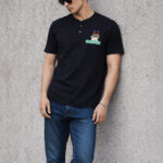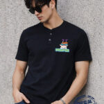 Perfect for casual outings or daily wear, this Dexter Henley T-shirt combines comfort, durability, and fun cartoon style for everyday fashion.
