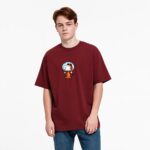 Step out in casual style with this Men Peanuts Graphic Print T-Shirt. Crafted from a soft and breathable cotton blend fabric, this maroon-colored t-shirt features a round neck and half sleeves for a comfortable everyday fit. Designed with a fun Peanuts graphic print and an oversized silhouette, it offers a perfect blend of playful character appeal and relaxed comfort.