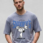 Features a vibrant Snoopy weightlifting graphic with “Strength Club” typography on the front.