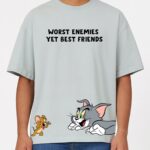 MINUTE MIRTH Men’s “Worst Enemies Yet Best Friends” Tom & Jerry Printed Pure Cotton Oversized T-Shirt (Grey, Pack of 1)