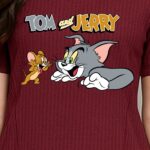 Add playful cartoon charm to your wardrobe with this Women’s Tom & Jerry Printed Crew Neck T-Shirt from Minute Mirth. Made from soft and comfortable cotton blend fabric, this wine-colored t-shirt features a classic crew neck and short sleeves for all-day ease. Designed in a regular fit with regular length, it offers a relaxed and stylish look perfect for casual outings or everyday wear.
