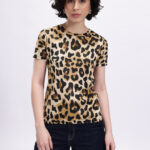 Minute Mirth Women Animal Skin Printed Regular Fit T-shirt (Beige and Black, Pack of 1)