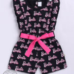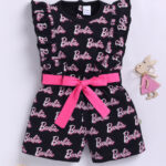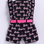 Mom’s love Barbie Printed Pure Cotton Jumpsuit for Infant Girls (Black, Pack of 1)